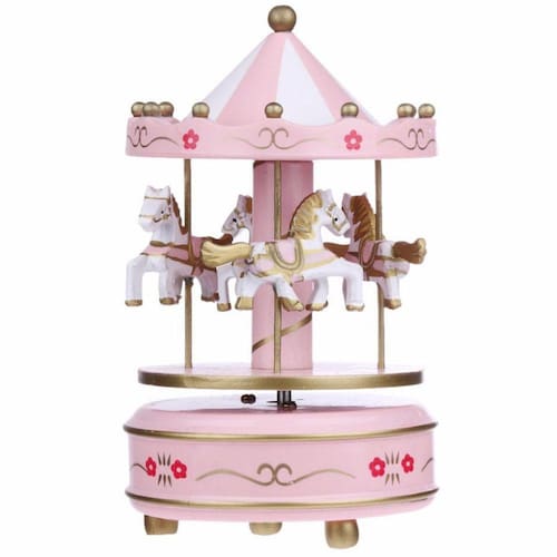Carrossel Musical Caixa Música Melodia Bebê Peça especial e delicada, deixa qualquer ambiente com ar agradável.Ótimo para quartos infantis ou para presentear alguém especialNão necessita de pilhasCor: RosaCaracterísticas:Funcionamento: Basta girar o Carrossel para dar cordaMaterial: MadeiraDimensão: 18x10x10cmPeso: 290gItem Incluso:01 Carrossel Musical Caixa Música Melodia Bebê