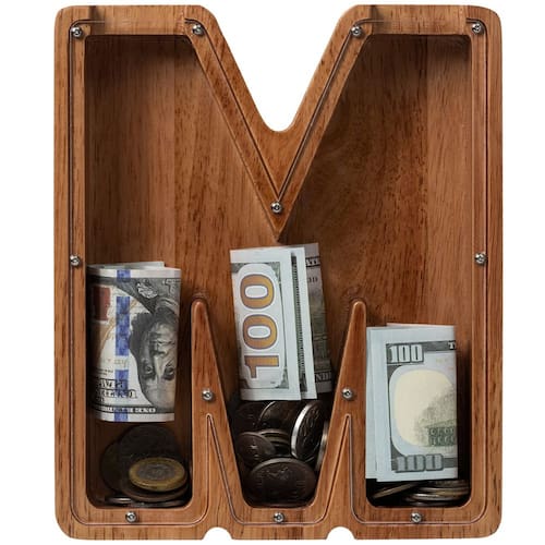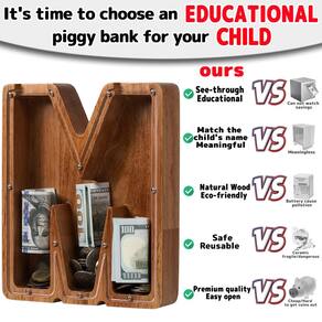 Ladenk Cofrinho infantil de madeira extra grande, 30,5 cm (12") para meninos e meninas - 🎁 ?Extra grande, mais capacidade? Ouvimos as vozes de muitos clientes, dissemos que nosso banco de cartas não é grande o suficiente, então fizemos um banco extra maior para economizar mais dinheiro, este tamanho de banco de cartas é de 30,5 cm, o suficiente para economizar as moedas e o dinheiro das crianças - 🎁 ?Brinquedos educativos montesorianos? Cofrinho transparente na frente do uso de acrílico transparente, pode atrair crianças para observar o crescimento da economia, para que elas gostem de salvar, para desenvolver o hábito de aprender a economizar desde cedo. Escolha um banco com as iniciais correspondentes aos nomes das crianças, um presente exclusivo para meninos e meninas de qualquer idade. - 🎁 ?Artesanato de alta qualidade?Nosso banco é feito de nogueira ou carvalho de alta qualidade, mais resistente e durável, o banco foi polido várias vezes, tratamento de óleo natural não tóxico, tornando a aparência mais suave e confortável. - 🎁?Fácil de abrir?Quando você quiser abri-lo, você só precisa desparafusar alguns parafusos, remover o vidro para tirar as moedas e depois colocá-lo de volta para continuar a usar, porque é feito de madeira de alta qualidade, pode ser utilizado por um longo tempo, seguro e ecológico - 🎁?SERVIÇO LADENK?Se você tiver alguma dúvida sobre o banco ou precisar que personalizemos seu banco, , fornecemos serviço completo de gravação a laser, podemos gravar o conteúdo que você deseja na frente e atrás, beneficiará seu filho por toda a vida