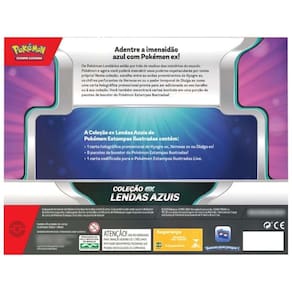 A coleção ex Lendas Azuis traz toda a grandiosidade dos Pokémon Lendários em um conjunto especial para os fãs do universo Pokémon Estampas Ilustradas. Com cartas poderosas e boosters repletos de surpresas, essa coleção é uma excelente escolha tanto para jogadores que buscam fortalecer seus decks quanto para colecionadores que desejam expandir sua coleção com cartas exclusivas. Essa coleção oferece três variações de carta promocional principal: Xerneas ex, Kyogre ex e Dialga ex. Cada uma dessas cartas holográficas traz habilidades únicas e representa a imponência desses Pokémon Lendários no campo de batalha. Além disso, o conjunto inclui oito pacotes de booster de Pokémon Estampas Ilustradas, aumentando ainda mais as chances de encontrar cartas raras e estratégicas. Como bônus, há também uma carta codificada para ser resgatada no Pokémon Estampas Ilustradas Live. Com um design vibrante e um conteúdo recheado de possibilidades, essa coleção é um verdadeiro convite para explorar a imensidão azul do mundo Pokémon. Produto autêntico e lacrado, garantindo autenticidade e qualidade para os verdadeiros fãs do jogo.