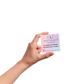 Indicamos o uso de caneta permanente para prencher o nome do cliente e sua rede social, pois a frente vai com verniz.