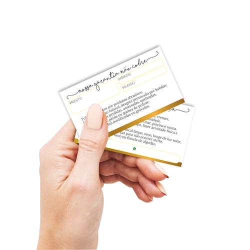 Cartão certificado de garantia + Cuidados com a peça Simples e objetivo, mostre o quanto seu cliente é especial.
