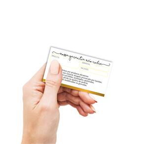 Indicamos o uso de caneta permanente para prencher o nome do cliente e sua rede social, pois a frente vai com verniz.