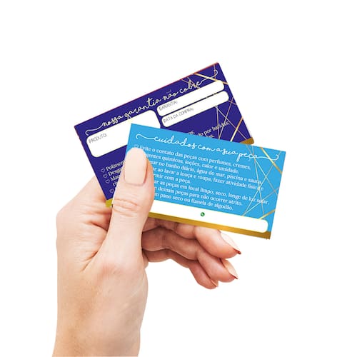 Cartão Certificado de Garantia - E cuidados com sua peça - Bijouteria - Jóias - 50 unidades - cor: azul