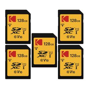 - 5 cartões de memória Full HD Kodak SD Premium Performance Class 10 UHS-I U1 V10 com velocidade de até 25 MB/s - O pacote inclui: 5 x cartão de memória Full HD