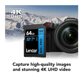 Cartão de memória SDXC Lexar de alto desempenho 800x PRO Blue Series de 64 GB, Classe 10, UHS-I, V30 (LSD0800P064G-BNNNU)