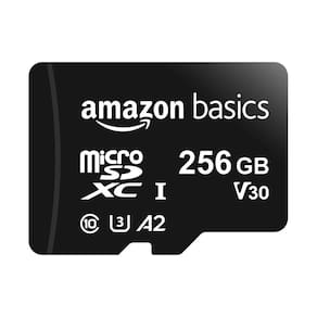 Cartão de memória Micro SDXC Amazon Basics com adaptador de tamanho completo, A2, U3, velocidade de leitura de até 100 MB/s, 256 GB, preto