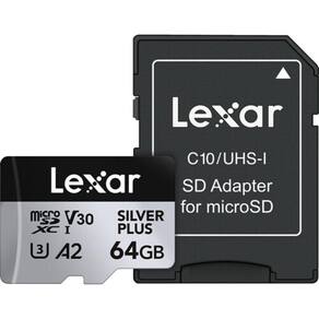 Cartão memória lexar micro sd xc 64gb 205mb/s uhs-i v30 silver plus lmssipl064g-bnanu