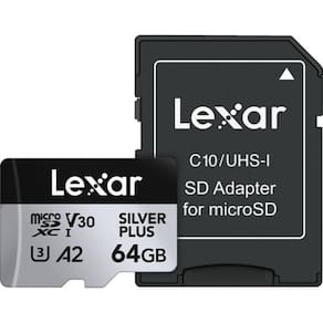 Cartão memória lexar micro sd xc 64gb 205mb/s uhs-i v30 silver plus lmssipl064g-bnanu