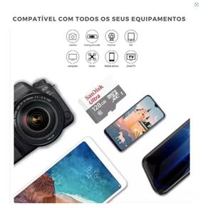 Descrição • Adicione até 128 GB de espaço de armazenamento ao Android ou outro smartphone ou tablet • UHS-1 Classe 10 para gravação de vídeo Full HD 1080P • Velocidades de leitura até 100 MB / s para transferência rápida de arquivos • O aplicativo SanDisk Memory Zone oferece suporte a transferência automática de arquivos para espaço livre no seu dispositivo • À prova d'água, à prova de temperatura, à prova de raios X e à prova de ímã • Inclui adaptador MicroSD para SD