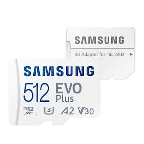 Samsung Cartão Memória Micro Sd 512gb Evo Plus Velocidade de Leitura de Até 130Mbs Certificação de Desempenho A2 para Aplicativos Interface de Barramento UHS-I/U3 Classe de Velocidade c10 Classificação de Velocidade de Vídeo V30 MicroSd com Adaptador Incluso / No Brasil