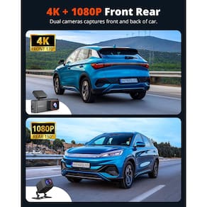 - CÂMERA FRONTAL E TRASEIRA 4K+1080P DASHCAM: câmera de painel duplo 4K com cartão SD de 64 GB de alta velocidade. A câmera frontal do painel grava vídeos de 4K a 170°, a câmera traseira à prova d'água grava vídeos 1080P a 150° simultaneamente. Mini câmera de painel oculta, tela de 1,5" para visualização de vídeo