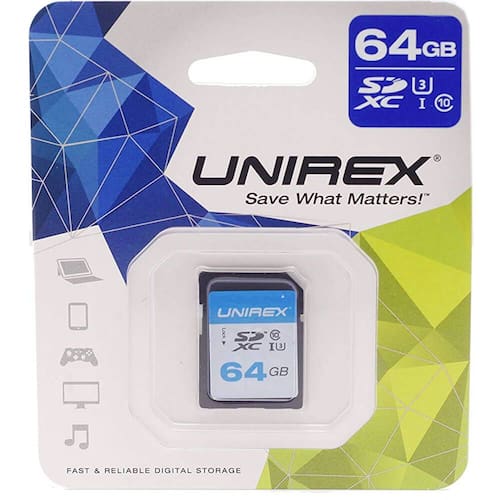 Salve o que importa com este cartão SD de tamanho completo da Unirex. Com 64 GB de espaço de armazenamento, este cartão SD é perfeito para seus telefones celulares, tablets, câmeras e muito mais.