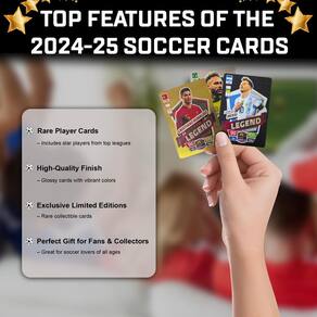 Cartões colecionáveis de futebol 2024-25 | Celebre a emoção da temporada de futebol com este conjunto de cartas colecionáveis de futebol com 3 pacotes exclusivos em ouro, preto e prata. Cada pacote contém 11 cartas premium para um total de 33 cartas, mostrando designs deslumbrantes e destaques memoráveis do jogador. Ideal para iniciantes e colecionadores experientes, este conjunto traz gráficos vibrantes e de alta qualidade e materiais duráveis para cada cartão. Com seus temas de cores exclusivos, esta coleção é um presente fantástico para qualquer fã de futebol ou um ótimo complemento para coleções pessoais. Desfrute de um conjunto colecionável premium de longa duração que mantém a emoção do jogo viva durante toda a estação! - : Colecione momentos icônicos da temporada de futebol 2024-25 com este conjunto, com designs exclusivos em três pacotes de cartas de futebol, perfeito para fãs que desejam um pedaço da ação. - - : Este conjunto tem três pacotes, com cada pacote contendo 11 cartas colecionáveis de futebol. Você receberá um total de 33 cartas, apresentando os melhores jogadores da temporada 2024-25. - : Cada pacote se destaca com seu próprio tema de cores exclusivo — ouro, preto e prata — adicionando designs vibrantes e colecionáveis para tornar sua coleção verdadeiramente única. - -: Feitos de materiais de qualidade, estes cartões mantêm suas cores vivas e imagens nítidas, garantindo que fiquem ótimos em qualquer coleção ano após ano. - : Seja para crianças, adolescentes ou colecionadores, este conjunto de cartas de futebol é um ótimo presente, oferecendo uma experiência emocionante de unboxing e uma adição memorável a qualquer coleção de futebol.