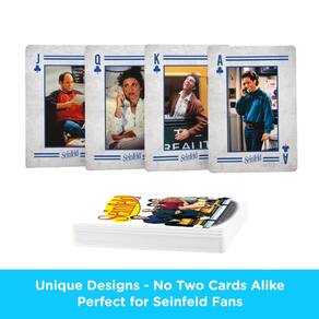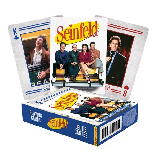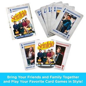 - Cartas de jogar SEINFELD: Jogue seus jogos de cartas favoritos com amigos e familiares enquanto continua as desventuras com Jerry, um comediante stand-up e seus três amigos excêntricos, e enfrenta as armadilhas e recompensas da vida na cidade de Nova York nos anos 90