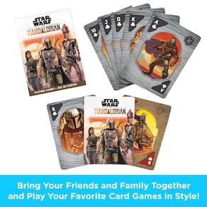 - CARTAS DE BARALHO MANDALORIANAS: Jogue seus jogos de cartas favoritos enquanto se junta às dificuldades de um pistoleiro solitário nos confins da galáxia com este baralho de cartas de Star Wars: The Mandalorian com imagens inspiradas na série de TV