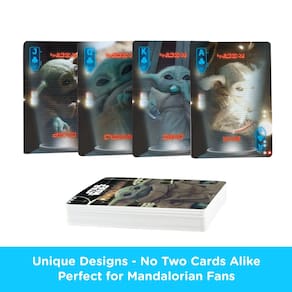 - Designs exclusivos de cartas: este baralho Mandolorian Grogu inclui várias imagens. Carregado com imagens e projetado para diversão para fãs e jogadores.