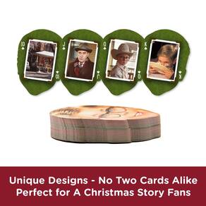 - Design exclusivo em cada carta: este baralho de cartas Christmas Story inclui 54 cartas (52 cartas de baralho e 2 coringas). Cada carta de baralho apresenta seu próprio design e arte distintos com o tema da História de Natal. Não há dois cartões iguais