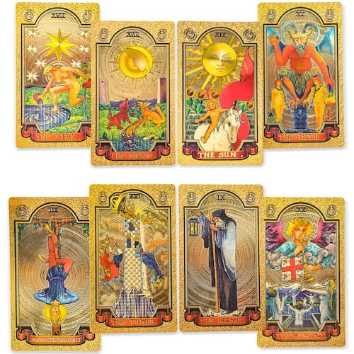 Nossas cartas de tarô são perfeitas para iniciantes. O pacote do baralho de tarô vem com um livreto detalhado que oferece uma explicação fácil de ler para os jogadores. A cor do tarô é dourada e cada peça parece tão boa quanto uma folha de ouro, fazendo com que este baralho de tarô pareça muito sofisticado. Perfeito para sua coleção. Portanto, se você está procurando o melhor presente para amantes de jogos, encontrou nosso baralho de tarô. O design dourado faz com que tudo se destaque e ajuda a focar na carta. Ofereça uma experiência diferente aos usuários. Agora vamos entrar no mundo das cartas de tarô.