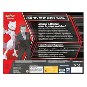 Prepare-se para mergulhar no lado sombrio do universo Pokémon com a Box Pokémon Mewtwo ex da Equipe Rocket! Esta edição especial traz o lendário Mewtwo ex em versão holográfica promocional, além de cartas exclusivas do Meowth e do infame Giovanni, líder da Equipe Rocket. Ideal para fãs da franquia, colecionadores e jogadores que buscam cartas poderosas e diferenciadas.