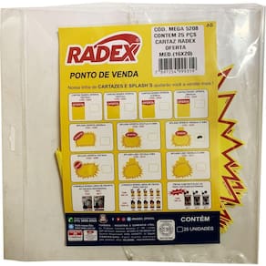 Cartaz em papel duplex splash, gramatura 250 grs / metro quadrado, utilizar produtos Radex como, pinceis permanente, kit de escrita, tintas para cartazes e tintas para cartazes UV para exposição externa. Pacote com 25