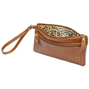Carteira Bolsa Clutch Feminina Porta Celular em Couro - Marrom - P