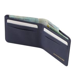 Estrutura do corpo: Construção em couro macio de espessura média e toque macio. Forro misto de poliéster e alumínio com blindagem de leitura Rfid. Logomarca prensada em relevo. Dimensões fechada: 10,5 x 8,5 x 01 cm largura x altura x espessura Dimensões aberta: 21,5 x 8,5 x 01 cm largura x altura x espessura Peso aproximado: 40 gramas Material: couro