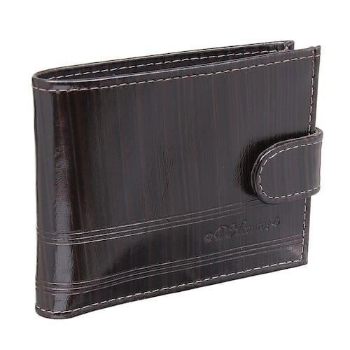 Carteira masculina DH Couros fabricada em couro na cor Café com fechamento por botão de pressão, possui total de 13 compartimentos, sendo: 6 para cartões, 1 para dinheiro e 6 plásticos para documentos.