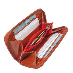 Composição: - 02 divisórias para notas dobradas e documentos - 04 compartimentos internos para cartões de crédito - 02 divisórias para documentos e pequenos objetos - 01 bolso interno com zíper para guardar moedas e pequenos acessórios