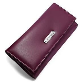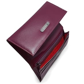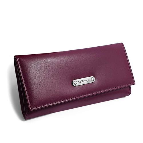 Carteira De Couro Feminina Para Cartões Documentos Moedas - Le Voyage - Roxo Açai - M