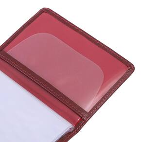 Parte interna: Dois porta notas dobradas. Dois slots para cartões que comportam até 4 unidades considerando utilizar 2 cartões por slot . Um compartimento revestido em PVC para fotos RG ou documento veicular. Um núcleo com 6 compartimentos em PVC para acomodar documentos.