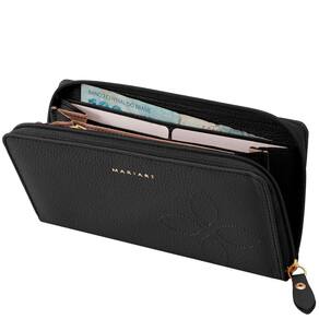 Parte interna: Doze slots para cartões que comportam até 24 unidades considerando utilizar 2 cartões por slot . Cinco compartimentos livres para colocar cédulas e documentos. Bolso centralizado com fechamento em zíper para acomodar moedas.