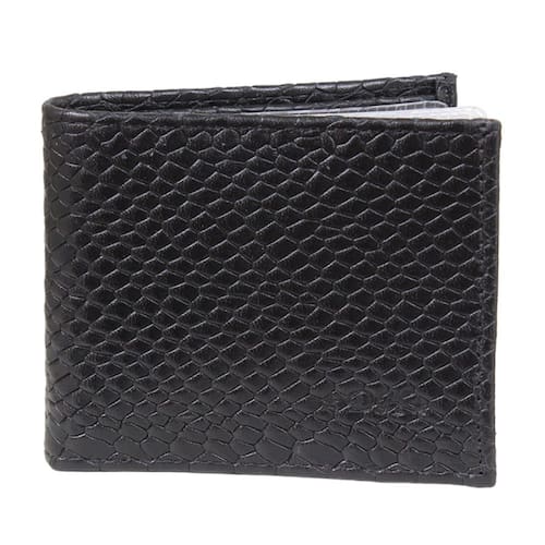 Carteira masculina DH Couros fabricada em couro trabalhado estilo cobra na cor Preta, possui total de 11 compartimentos, sendo 4 para cartões, 1 para dinheiro e 6 plásticos para documentos.