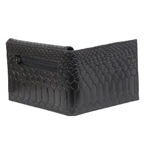 Carteira masculina DH Couros fabricada em couro de alta qualidade na cor Preto estilo crocodilo, possui total de 15 compartimentos, sendo 6 para cartões, 1 plástico transparente, 1 para dinheiro, 6 plásticos para documentos e 1 zíper para moedas.