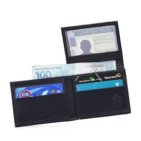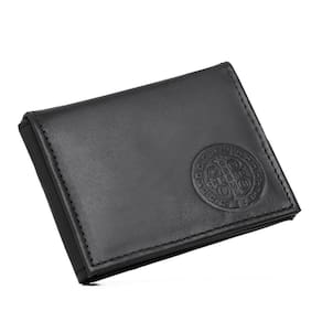 Carteira Em L Couro Alta Qualidade Porta Cartao Documentos Cedulas Estampa Medalha São Bento - Preto - Único
