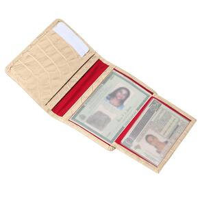 Dois compartimentos por baixo dos cartões para notas dobradas, RG e CNH.