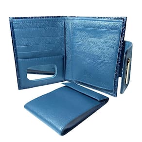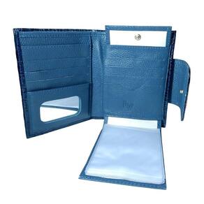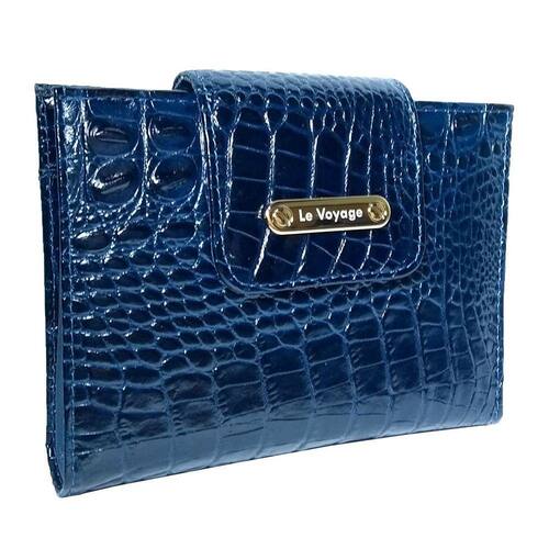 Carteira Feminina De Couro Bovino Cheque Cartões Documentos - Le Voyage - Azul Marinho - M