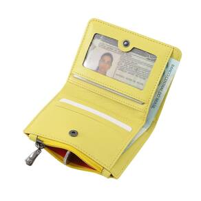 Estrutura do corpo: Construção em couro macio de brilho médio. Forro em sarja vermelha. Logomarca em relevo. Fechamento em botão de pressão. Dimensões fechada: 11 x 09 x 02 cm comprimento x altura x largura Dimensões aberta: 11 x 17 x 01 cm comprimento x altura x largura Peso aproximado: 60 gramas Material: couro