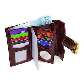 Composição: - 01 bolso grande interno para cédulas abertas - 10 compartimentos internos para cartões - 01 bolso interno com zíper para moedas ou itens semelhantes - 02 divisórias internas para documentos, cédulas ou itens semelhantes - 06 compartimentos plásticos internos para documentos