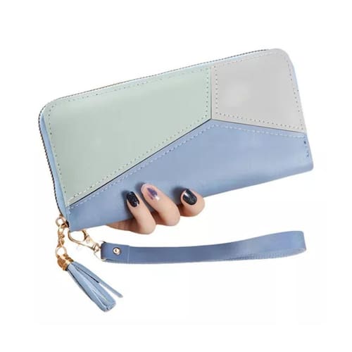 Carteira feminina estilosa grande com ziper porta cartoes Cor: azul Carteira feminina com recortes estilo geométrico clássico grande. Possui alça de mão, compartimentos interno. Fashion e essencial bem elaborada para mulheres elegantes.