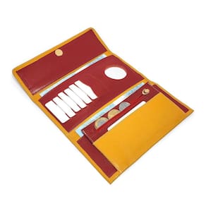 Composição: - 03 bolsos grandes internos para cédulas abertas, documentos ou itens semelhantes - 06 compartimentos internos para cartões - 01 bolso interno com zíper para moedas ou itens semelhantes - 01 bolso externo com zíper para moedas ou itens semelhantes