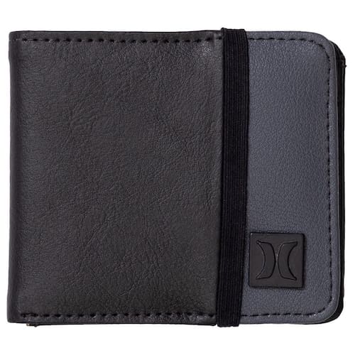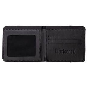 Carteira Hurley feita em material não natural, recorte externo, placa de metal ICON, compartimento para cartões e compartimento para cédulas.