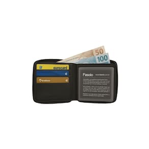 Carteira Fasolo Masculina Couro - Confeccionada em Couro; - Possui seis divisões para cartão; - Possui seis plásticos transparentes para documentos; - Possui uma repartições para notas e divisões extras; - Possui Bolso com zíper externo para moedas. ; - Dimensões: 9 x 12 x 2 cm alt x larg x prof ; Imagens meramente ilustrativas Marca: Não Informado Ean: 7892577080607