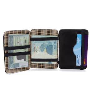 CARACTERÍSTICAS DO PRODUTO Material: Couro Fechamento: Elástico Material Interno: Alternativo Estilo da Peça: Lisa Detalhe: Elástico Interno Complemento da Descrição: Tripla Repartição Para Cartões e Documentos. Comporta até 8 cartões, RG e Cédulas.