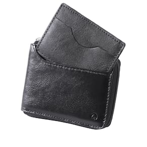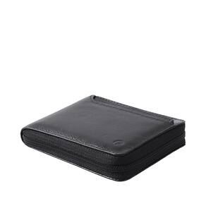 A parte traseira conta com porta moedas com fechamento em zíper. A parte frontal conta com bolso livre para encaixe de porta CNH removível com slot para cartão que acompanha a carteira.