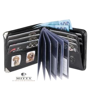 Uma griffe internacional especialmente para você. O único, absoluto. É mitty Material: couro legítimo de alta qualidade e materiais nobres. Confeccionada em couro com leves ranhuras. Parte externa: possui logo mitty na parte frontal centralizado. Na parte traseira possui porta moedas com fechamento em zíper. Parte interna: acabamento interno em tecido exclusivo mitty. Porta cartões, repartição de notas, porta moedas com ziper, porta cartão plástico, comporta cnh. Embalagem caixa rígida, acompanha bloquinho ser sucesso, catálogo, certificado de garantia, envelope cartão de mensagem para presente. Porta cartões (7) Repartição para notas (2) Porta cartões plástico (6) - uso opcional Com porta moedas de zíper Tamanho: comprimento 11,5cm x altura 8,7 cm
