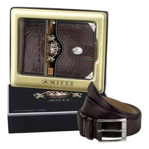 Carteira Masculina De Couro Mitty M2Ef + Cinto
