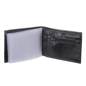 Carteira masculina DH Couros fabricada em couro na cor Preta, possui total de 12 compartimentos, sendo 3 para cartões, 2 para dinheiro com compartimento separa com zíper, 6 plásticos para documentos e compartimento com zíper para moedas.