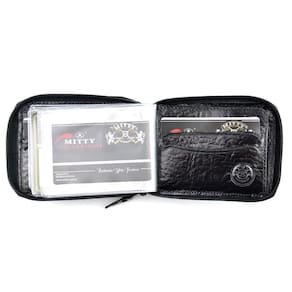para você que busca estar sempre na moda mas não deixa de lado a qualidade e durabilidade da carteira, conheça a Carteira Mitty Em Couro Com Preto - M1ZA Carteira Mitty confeccionada em couro de alta qualidade, trazendo sofisticação, segurança e economia para seu bolso.Características:- compartimentos para cartões de crédito;- 4 bolsos com janelas plásticas transparentes;- compartimentos para cédulas.Especificações Técnicas:-medidas da Carteira Fechada: 11,5cm x 8,5cm;-material: Couro;-cor: Preto;-cabe RG.Obs.: -O detalhe em relevo na parte posterior da carteira poderá apresentar variações dependo da disponibilidade da coleção.Este detalhe não altera as características principais da carteira e destacam ainda mais a exclusividade de cada peça fabricada à mão. -modelos podem variar cantoneiras ou ranhuras/porta foto ou não