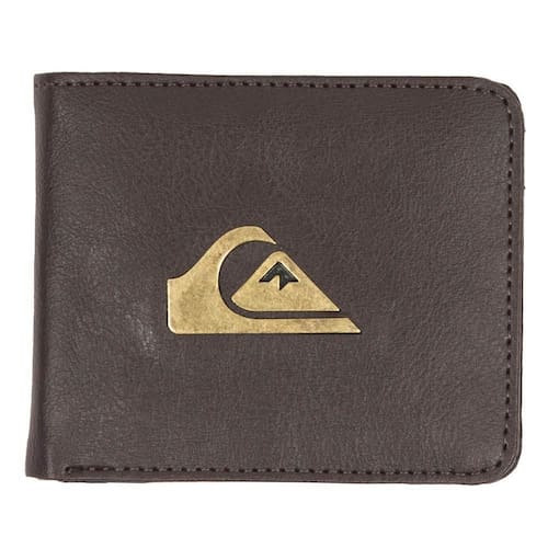 Carteira QuikSilver feita em tecido manta de PVC e Poliéster, cantos arredondados, aplicação de placa centralizada no painel frontal, abertura simples e única no painel frontal, abertura para cartões em ambos os lados, aplicação de alta frequência da marca no interno e aplicação de etiqueta bandeira no interno da carteira.