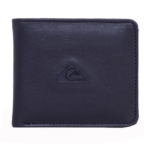 Carteira QuikSilver feita em tecido manta de PVC e Poliéster, cantos arredondados, aplicação de placa centralizada no painel frontal, abertura simples e única no painel frontal, abertura para cartões do lado esquerdo, compartimento de moedas com fecho em zíper do lado direito, aplicação de alta frequência da marca no interno e aplicação de etiqueta bandeira no interno da carteira.